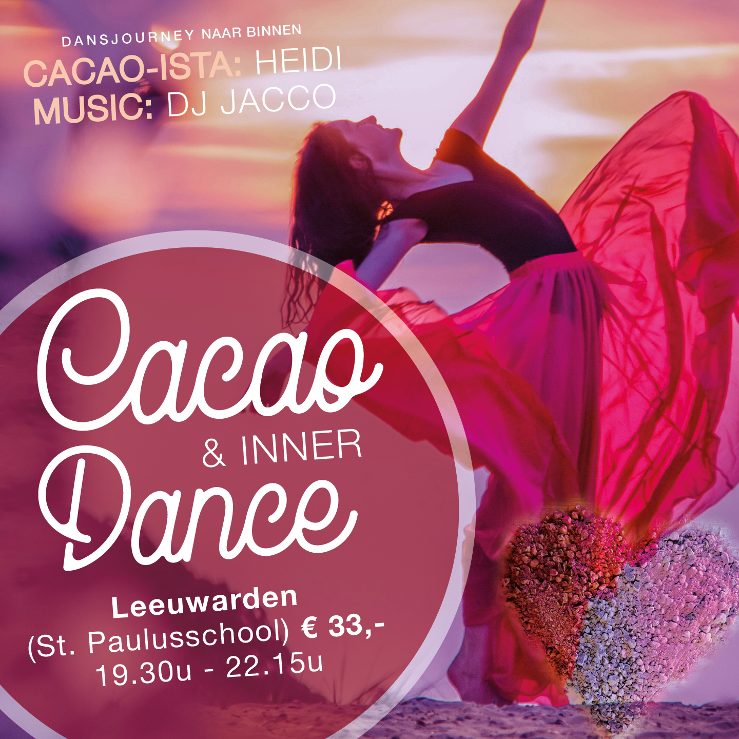 Zin om alles uit je lijf te dansen? Met Cacao & Shamanic Dance mag je voelen wat er in je is en mag je volgen wat je lichaam je verteld. Heerlijk om je vrij te maken en jezelf te her-ontdekken in deze bijzondere dans met de magische muziek van DJ Jacco en onder begeleiding van de Spirit van Cacao… Lees meer…